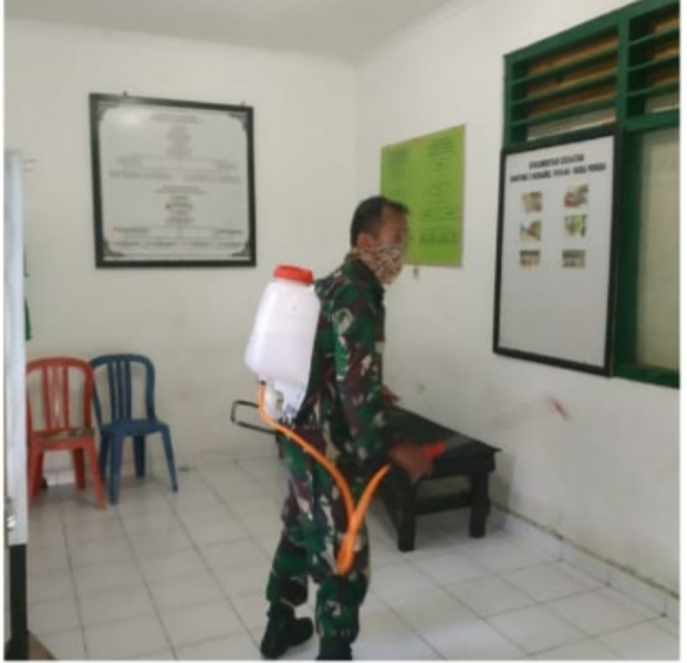 Salah satu kegiatan yang tetap konsisten dilakukan adalah melaksanakan penyemprotan cairan disinfektan di sejumlah tempat dengan sasaran fasilitas pangkalan militer, perumahan dinas dan fasilitas umum yang digunakan masyarakat di wilayah Kabupaten Klungkung.