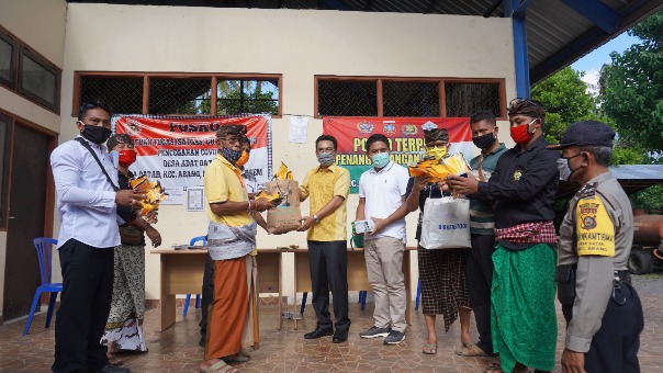 Didampingi I Nyoman Mardana Wimbawa, anggota Fraksi Golkar dari dapil Kecamatan Abang dan I Made Budi Sugianto, kader Partai Golkar, Nengah Sumardi berkunjung ke Desa Datah sambil menyerahkan bantuan berupa alat pelindung diri (APD) seperti masker dan puluhan sanitaizer.