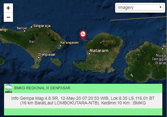 Karangasem, LenteraEsai.id – Gempa berkekuatan M= 4,8 terjadi di wilayah Lombok Utara, Nusa Tenggara Barat (NTB), Selasa (12/5/2020) pagi, dan getarannya terasa hingga di Kabupaten Karangasem, Bali.