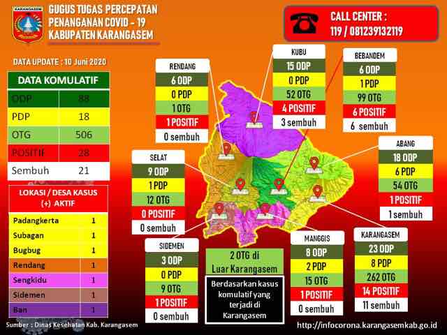 Karangasem, LenteraEsai.id – Kasus positif Corona di Kabupaten Karangasem terus bertambah, kali ini satu kasus baru kembali ditemukan pada hari Rabu (10/06/2020).