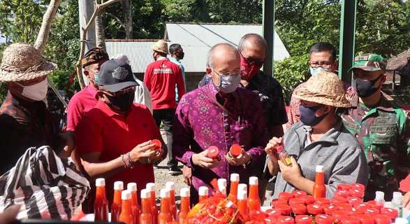 Ia mengatakan, pihaknya mendorong kelompok petani agar mengolah menjadi produk lainnya yang memiliki nilai tambah pada masa panen raya. Untuk itu, pihaknya memberikan apresiasi kepada KTT Merta Buana yang sudah berinovasi menghasilkan aneka produk hilir seperti Sambal Goreng, Sambal Hijau, Sambal, Chili Sauce, Sambal Klengis, Saus Tomat, Sambal Terasi dan Bubuk Cabai.