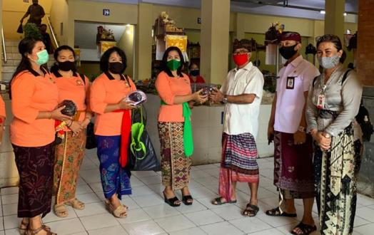 Gianyar, LenteraEsai.id – Dharma Wanita Persatuan (DWP) Kabupaten Gianyar menyerahkan bantuan 600 masker di 3 pasar tradisional di Kabupaten Gianyar, sebagai upaya untuk bersama-sama mencegah penyebaran Covid-19. Mengingat saat ini, pasar tradisional sangat rentan terjadi penularan virus terutama untuk transmisi lokal.