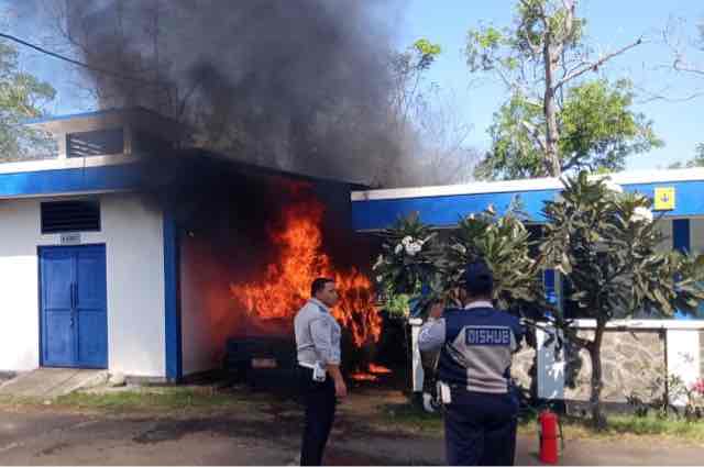 Gilimanuk, LenteraEsai.id – Petugas jaga pada Pos Covid-19 di depan Jembatan Timbang Cekik, Kelurahan Gilimanuk, Kecamatan Melaya, Kabupaten Jembrana dihebohkan dengan adanya kendaraan roda empat milik Dinas Perhubungan Provinsi Bali yang tiba-tiba terbakar.