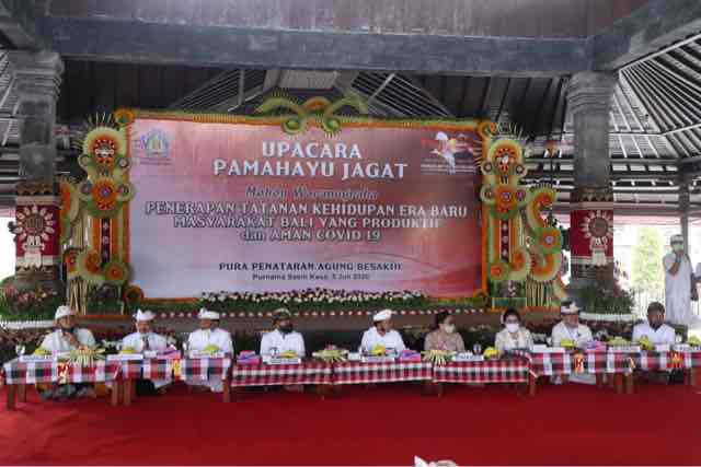 Karangasem, LenteraEsai.id – Upacara Pemahayu Jagat digelar Pemprov Bali sebagai langkah awal dimulainya penerapan tatanan kehidupan era baru masyarakat Bali yang produktif namun aman dari ancaman Covid-19.