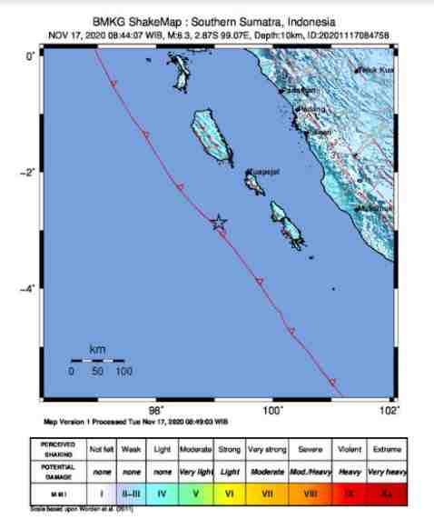 Mentawai, LenteraEsai.id – BPBD Kabupaten Kepulauan Mentawai, Sumatera Barat masih memantau dampak yang diakibatkan oleh gempa berkekuatan M=6.3 yang mengguncang wilayah kepulauan itu pada Selasa (17/11) pagi sekitar pukul 08.44 WIB.