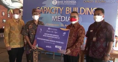 Bantuan diserahkan oleh Kepala Perwakilan Bank Indonesia Provinsi Bali Trisno Nugroho kepada Ketua PWI Provinsi Bali IGN MB Dwikora Putra, di Denpasar, Kamis (26/8).