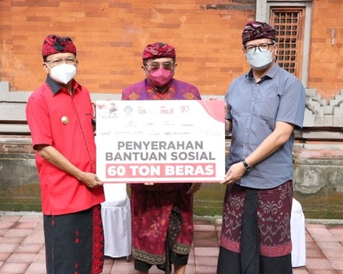 Seperti yang nampak pada Kamis (Wraspati, 7 Oktober) di Jayasabha-Denpasar, Gubernur Bali Wayan Koster menerima bantuan beras sebanyak 60 ton dari Otoritas Jasa Keuangan, Forum Komunikasi Lembaga Jasa Keuangan (FKLJK) Provinsi Bali dan industri secara mandiri. Bantuan beras ini nantinya akan diserahkan langsung kepada Kepala Desa atau Bendesa Adat se-Bali untuk kemudian disampaikan kepada masing-masing warga yang ada di wilayahnya.
