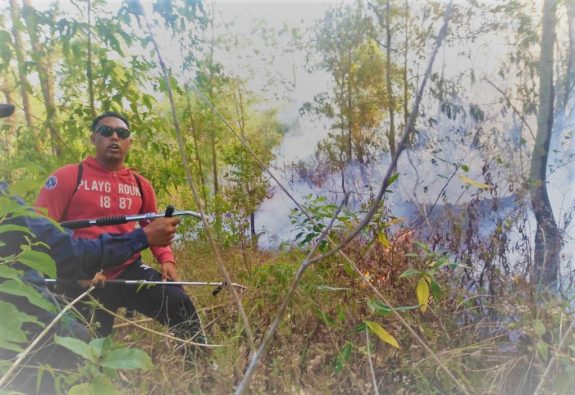 Upaya pemadam dilakukan dengan memutus lidah api dengan membuat sekat bakar yang sering disebut teknik bakar balik, sehingga kobaran si jago merah tidak bisa lagi merembet ke areal yang lebih luas.