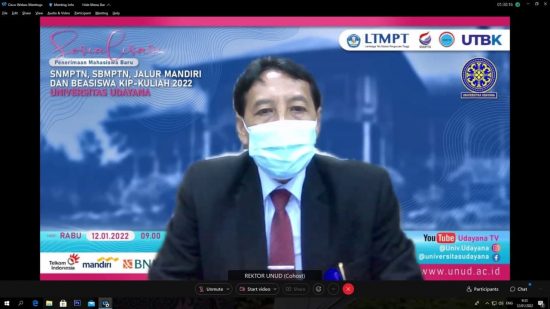 Jimbaran, LenteraEsai.id – Dilakukan secara daring melalui aplikasi Cisco Webex, Universitas Udayana (Unud) menggelar kegiatan sosialisasi penerimaaan mahasiswa baru pada hari Rabu tanggal 12 Januari 2022.