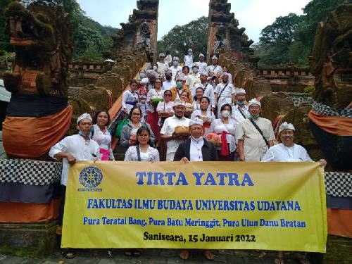 Fakultas Ilmu Budaya Universitas Udayana melaksanakan program tirtayatra. Kegiatan ini diikuti jajaran Dekanat, Senat Fakultas, Kaprodi, seluruh tenaga pendidik, serta para dosen. Rombongan berangkat bersama-sama dari Kampus Fakultas Ilmu Budaya di Denpasar, Sabtu (15/1/2022).