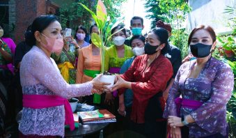 Ny Sagung Antari Jaya Negara menyambut baik kegiatan penyerahan bantuan bibit tanaman ini. Selaku Ketua Tim Penggerak PKK Kota Denpasar, dirinya berharap penyerahan bibit ini dapat menyukseskan terwujudnya program ‘Hatinya PKK’. Didampingi Ny Ayu Kristi Arya Wibawa dan Ny Ida Ayu Widnyani Wiradana, Ny Sagung Antari juga menyempatkan diri menanam beberapa bibit di Rumah Lokus tersebut.
