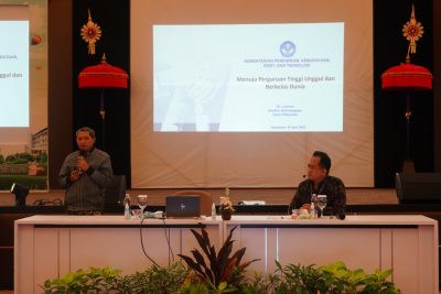 Denpasar, LenteraEsai.id – Dalam upaya meningkatkan kualitas dan mutu pendidikan menuju perguruan tinggi unggul dan berkelas dunia, Universitas Pendidikan Nasional (Undiknas) hadirkan Direktur Kelembagaan Direktorat Jenderal Pendidikan Tinggi (Ditjen Dikti) Kementerian Pendidikan, Kebudayaan, Riset, dan Teknologi (Kemenbudristek) melalui Acara Sosialisasi Arah Kebijakan Kelembagaan pada Perguruan Tinggi, bertempat di Auditorium Dwi Tunggal Undiknas pada Kamis (16/6).