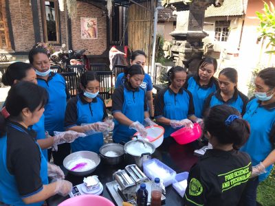 Pengabdian kepada masyarakat dilaksanakan oleh tim dari Program Studi Teknologi Pangan FTP Unud yaitu Prof Dr Ir I Nengah Kencana Putra MS, AA Istri Sri Wiadnyani STP MSc, Dr Ir I Dewa Gde Mayun Permana MS, dan Dr Gusti Ayu Kadek Diah Puspawati STP MSi, I Gede Arie Mahendra Putra STP MTP, Putu Supartini dan Eva Nisaul Mufida.