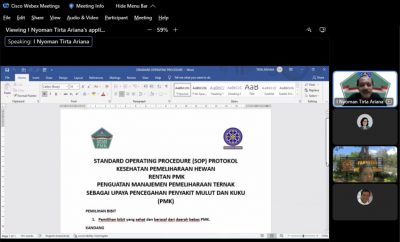 “Pelaksanaan kegiatan ini oleh Satgas PMK Fapet Unud akan dilaksanakan dengan melakukan pendekatan melalui kegiatan sosialisasi edukasi PMK bersama dengan Dinas maupun dengan melaksanakan sosialisasi mandiri melalui kegiatan pengabdian. Topik yang rencananya akan disampaikan adalah dengan fokus pada manajemen pemeliharaan yang baik untuk mencegah penyebaran PMK”, ujar Dekan Fapet Unud.