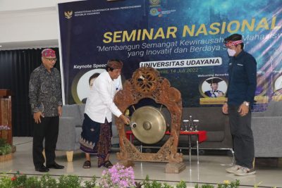Denpasar, LenteraEsai.id – Universitas Udayana melalui Inkubator Bisnis (Inbis) berkolaborasi dengan Kementerian Koordinator Bidang Perekonomian Republik Indonesia menyelenggarakan Seminar Nasional dengan tema ‘Membangun Semangat Kewirausahaan Mahasiswa yang Inovatif dan Berdaya Saing’, yang berlangsung secara hybrid dengan titik lokasi utama Ruang Nusantara Gedung Agrokompleks Kampus Sudirman Denpasar, pada Kamis (14/7).