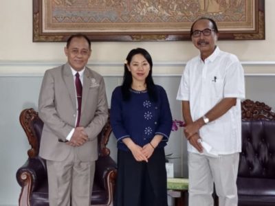 Denpasar, LenteraEsai.id – Naori Miyazawa PhD, salah seorang akademisi dari Universitas Nagoya-Jepang melakukan kunjungan ke Fakultas Hukum Unuversitas Udayana (FH Unud) pada Senin (18/7), dan langsung diterima oleh Dekan FH Unud beserta Guru Besar di bidang Hukum Adat Bali Prof Dr Wayan P Windia SH Msi.