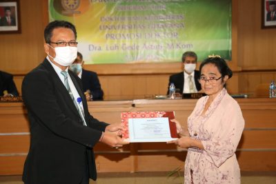 Pada ujian kali ini Dr Dra Luh Gede Astuti MKom dinyatakan lulus sebagai Doktor Lulusan ke-351 Program Studi Doktor Ilmu Kedokteran Fakultas Kedokteran Universitas Udayana dengan predikat Sangat Memuaskan. (LE-DP)