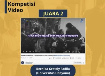 Bernika berhasil meraih Juara II Kompetisi Video Menuju Ulang Tahun ke-22 Hukum Online. (Foto: Dok Humas Unud)