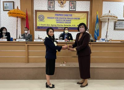 Dalam ujian terbuka, I Gusti Ayu Agung Sintha Satwika berhasil mempertahankan disertasi dengan judul Kesantunan Berbahasa Pemandu Acara dan Para Narasumber dalam Acara Kick Andy. Setelah melalui tahapan ujian terbuka, I Gusti Ayu Agung Sintha Satwika dinyatakan lulus dengan predikat sangat memuaskan dan merupakan Doktor ke-171 di FIB Unud dan Doktor ke-211 di Program Studi Linguistik Program Doktor.