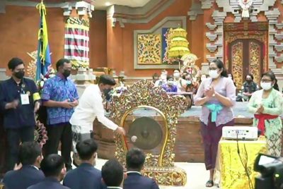 Sebelum acara penutupan, panitia mengumumkan kelulusan peserta PKKMB FIB tahun 2022. Acara penutupan ditandai dengan pelepasan nametag peserta serta pemukulan gong oleh Wakil Dekan I FIB Unud I Nyoman Aryawibawa PhD. (LE-DP)