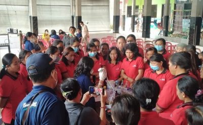 Pelatihan Pembuatan Masker Peel off dan Sabun Mandi Antibakteri dengan Bahan Aktif Kulit Pisang Hijau Lumut di Desa Wongaya Gede. (Foto: Dok Humas Unud)