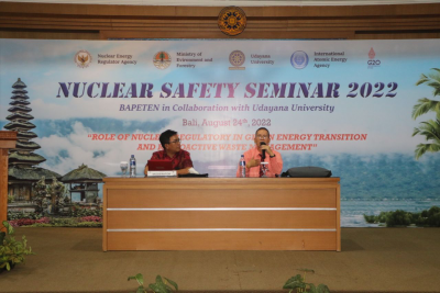 Plt Kepala Bapeten, Sugeng Sumbarjo dalam sambutannya menyatakan bahwa untuk menyambut KTT G20 2022 mendatang di Bali, di mana tema besar yang diangkat adalah mengenai transisi energi, dan seiring dengan perhatian pemerintah yang lebih besar terhadap isu-isu transisi energi bersih dan pengelolaan limbah radioaktif, maka Bapeten dalam Seminar Keselamatan Nuklir kali ini mengangkat tema ‘Peran Pengawasan Ketenaganukliran dalam Transisi Energi Hijau dan Pengelolaan Limbah Radioaktif’.