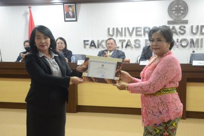 Adapun promotor dari promovenda yakni Prof Dr Ni Nyoman Kerti Yasa SE MS, Kopromotor Prof Dr Dra I Gusti Ayu Ketut Giantari MSi, dan Dr I Putu Gde Sukaatmadja SE MP, serta para penyanggah di antaranya Dr I Gusti Ngurah Jaya Agung Widagda K SE MM, Dr Ni Wayan Ekawati SE MM, dan Dr Putu Yudi Setiawan ST MM. Pada kesempatan kali ini sidang dipimpin oleh Wakil Dekan Bidang Akademik dan Perencanaan FEB Unud, Dr Ida Bagus Putu Purbadharmaja SE ME.