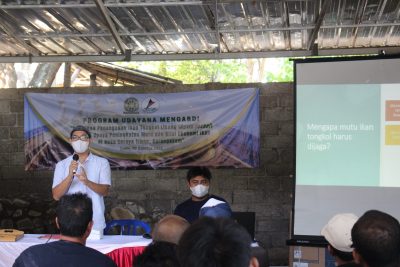 Pemberian materi oleh narasumber dalam Pelatihan Penanganan Ikan Tongkol FKP Unud di Desa Seraya Timur, Karangasem. (Foto: Dok Humas Unud)