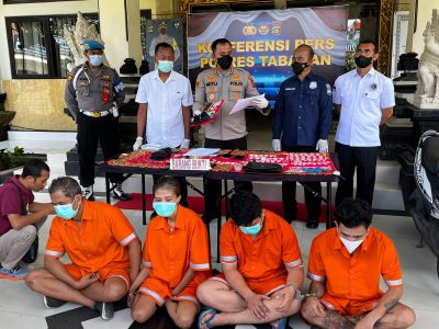 Keberhasilan dalam penangkapan ini dirilis langsung oleh Kapolres Tabanan, AKBP Ranefli Dian Candra SIK MH pada Selasa (13/9), bertempat di depan Mapolres Tabanan dengan menghadirkan 4 orang tersangka, juga menggelar barang bukti yang berhasil disita penyidik.