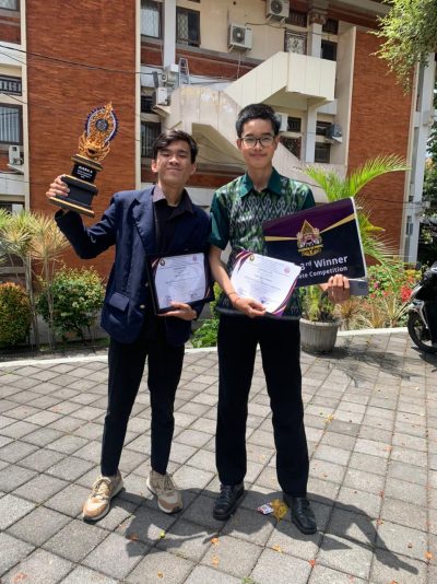 Tim debat Cakra Kanigara Unud,, Ahmad Farras Zhafir dan I Putu Martin Winata raih gelar 2nd Runner Up dalam International Debate Competition yang diselenggarakan Politeknik Negeri Bali. (Foto: Dok Humas Unud)