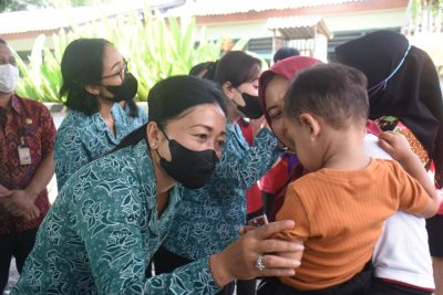 Ketua TP PKK Kota Denpasar Ny Sagung Antari Jaya Negara memantau langsung penyelenggaraan posyandu ini dan disambut baik warga setempat (Foto: Dok Humas Pemkot Denpasar)