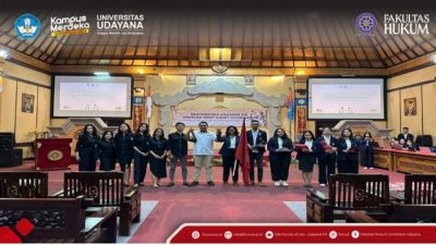 Denpasar, LenteraEsai.id – Komunitas mahasiswa Fakultas Hukum Universitas Udayana (FH Unud) pada Rabu, 11 Januari 2023 menyelenggarakan Musyawarah Anggota XIII dan serah terima jabatan kepengurusan Udayana Moot Court Community (UMCC), bertempat di Aula FH Unud Kampus Denpasar.