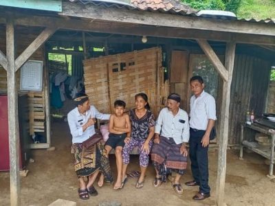 Perbekel Mayong saat anjang sana dan menyerahkan bantuan sembako kepada warga (Foto: Dok Pemerintah Desa Mayong)