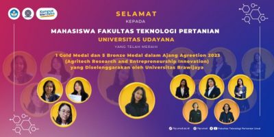 Denpasar, LenteraEsai.id – Mahasiswa Fakultas Teknologi Pertanian meraih banyak prestasi dalam ajang perlombaan Agritech Research and Enterpreneurship Innovation (AGREETION) yang diselenggarakan oleh Universitas Brawijaya pada Februari-Maret 2023. Uniknya, 6 medali berhasil diraih mahasiswa dari program studi yang ada di lingkungan Fakultas Teknologi Pertanian Unud .