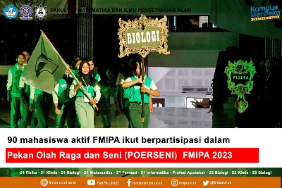 Porseni FMIPA 2023 diikuti peserta, baik dalam cabang perlombaan maupun pertandingan. Sebanyak 90 mahasiswa aktif FMIPA ikut berpartisipasi dalam menyukseskan kegiatan Porseni FMIPA 2023.