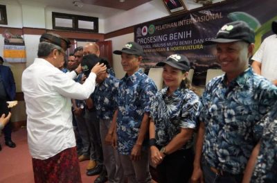 Ketua Panitia Dr Ir Gede Wijana MS dalam laporannya menyampaikan, pelatihan berskala Internasional Prosesing Benih atau sistem perbenihan dimulai dari produksi, analisis mutu, dan sertifikasi benih tanaman pangan dan hortikultura yang dilaksanakan untuk sebelas staf dari Kementerian Pertanian dan Perikanan Timor Leste, yang memungkinkan nantinya dilaksanakan pada tahap kedua, mengingat masih banyak SDM yang perlu ditingkatkan pengetahuannya dalam bidang ini.