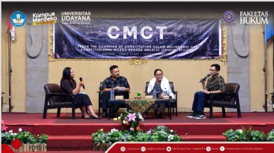 Denpasar, LenteraEsai.id – Pada Minggu (21/5/2023) telah dilaksanakan Constitutional Moot Court Training (CMCT) 2023 yang sekaligus menjadi pembukaan dari rangkaian acara CMCT 2023. Kegiatan ini merupakan wadah pelatihan peradilan semu konstitusi bagi mahasiswa FH Unud yang diadakan oleh Udayana Moot Court Community (UMCC).