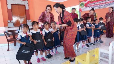 Gianyar, LenteraEsai.id – Guna terciptanya PAUD yang berkualitas, Bunda PAUD Kabupaten Gianyar bersama Dinas Pendidikan menggelar Road Show ‘Bunda PAUD Menyapa dan Berbagi’ sembari menyerahkan bantuan berupa tas, susu, tumbler dan tempat makan bagi anak sekolah PAUD di beberapa PAUD/TK di Kecamatan Gianyar, Blahbatuh, Tampaksiring dan Tegallalang, Selasa (30/5/2023).