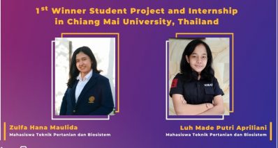 Denpasar, LenteraEsai.id – Luh Made Putri Apriliani dan Zulfa Hana Maulida, dua mahasiswa Program Studi Teknik Pertanian dan Biosistem, Fakultas Teknologi Pertanian Universitas Udayana (TPB FTP Unud) di bawah bimbingan Ni Nyoman Sulastri STP MAgr PhD dan I Putu Budisanjaya STP MT, berhasil meraih 1st Winner Student Project pada Student Project Competition 2023-REEC (Renewable Energy and Environment Conservation) Lab dan berkesempatan Internship di Chiang Mai University, Thailand.
