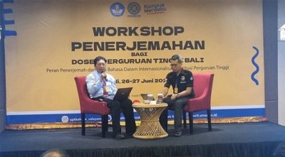 Denpasar, LenteraEsai.id – Menelisik peran penerjemah bahasa dalam internasionalisasi, UPT Bahasa Universitas Udayana (Unud) menyelenggarakan Workshop Penerjemahan. Kegiatan pelatihan ini dilaksanakan selama dua hari di Four Star by Trans Hotel Denpasar dengan mengangkat tema ‘Peran Penerjemah dan Juru Bahasa dalam Internasionalisasi Institusi Perguruan Tinggi’.