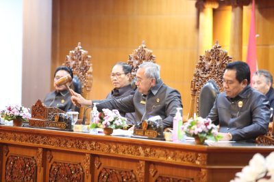 Bupati Badung I Nyoman Giri Prasta berhalangan hadir dalam rapat paripurna DPRD Badung siang itu, sehingga penjelasan KUA- PPAS APBD Badung 2023 dibacakan Wakil Bupati Badung Ketut Suiasa.