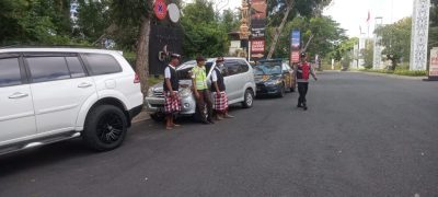 Berbekal peluit dan gerakan tangan yang terus ‘menari’, ‘Polisi Banjar’ dari Polsek Kuta Selatan melaksanakan pengaturan arus lalu lintas di Jalan Uluwatu Ungasan, tepatnya di depan pintu masuk GWK pada Minggu (13/8/2023) siang.