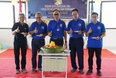 Jimbaran, LenteraEsai.id – Fakultas Kelautan dan Perikanan Universitas Udayana (FKP Unud) rayakan hari ulang tahun (HUT) ke-12 Badan Kekeluargaan Fakultas Kelautan dan Perikanan (BKFKP), bertepat di Ruang Aula FKP Kampus Unud Bukit Jimbaran, Badung, Jumat (13/10/2023). Perayaan ditandai dengan pemotongan tumpeng oleh Dekan Fakultas Kelautan dan Perikanan I Wayan Nuarsa.