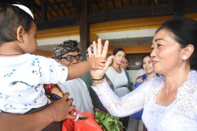 Denpasar, LenteraEsai.id – Ketua Tim Penggerak (TP) PKK Kota Denpasar Ny Sagung Antari Jaya Negara kembali menggelar kegiatan Menyapa dan Berbagi. Kali ini, Senin (27/11), dilakukan di Banjar Kedaton, Desa Sumerta Kelod, Kecamatan Denpasar Timur. Total 235 paket bantuan sembako dan pemberian makan tambahan (PMT) diserahkan pada kesempatan itu.