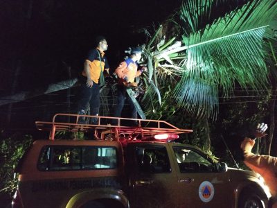 Dalam waktu yang tidak tergolong lama, TRC yang dibantu warga berhasil menangani pohon kelapa berdiameter 30 cm dan panjang 25 meter itu, diawali dengan memotong pelepah daun kelapa yang menghalangi akses jalan, selanjutnya Tim Perabasan PLN memotong bagian batang pohon kelapa yang menimpa kabel listrik milik PLN.
