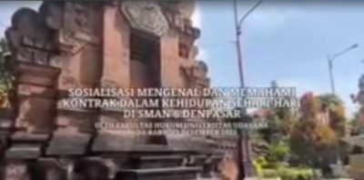 Karya rekaman video ini berisikan kegiatan Street Law (Sosialisasi Hukum) di SMAN 1 Denpasar dan SMAN 6 Denpasar dengan mulai mengenalkan kontrak kepada siswa-siswi yang duduk di bangku SMA.