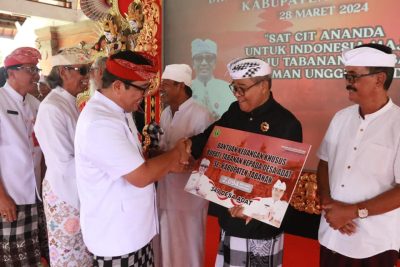 Dalam acara ini juga sekaligus dilakukan penyerahan punia (genta) kepada Ketua Paruman Sulinggih Kabupaten Tabanan, perwakilan Mangku Kahayangan Jagat se-Kabupaten Tabanan, sekaligus penyerahan bantuan BKK (Bantuan Keuangan Khusus) Tabanan kepada 349 Desa Adat se-Kabupaten Tabanan sekitar Rp2.094.000.000 dan kepada 428 subak se-Kabupaten Tabanan, terdiri dari 233 subak, 11 subak gede, 1 subak agung, dan 183 subak abian sekitar Rp1.540.800.000.