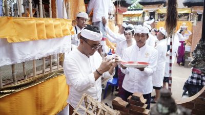 Denpasar, LenteraEsai.id – Wali Kota Denpasar I Gusti Ngurah Jaya Negara menghadiri Upacara Melaspas lan Mendem Pedagingan di Pura Puseh Dadia, Desa Adat Penatih bertepatan dengan Saniscara Paing Merakih, Sabtu (20/4/2024). Upacara melaspas ini dilaksanakan setelah bangunan Pelinggih Ratu Ibu tuntas direnovasi.