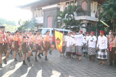 Pembukaan lomba Gerak Jalan Pramuka Penggalang serangkaian Perayaan Bulan Bung Karno di Kabupaten Tabanan, Sabtu (1/6). (Foto: Prokopim Tabanan)