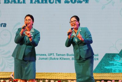 Tabanan, LenteraEsai.id – Kembali sumbangkan suara emasnya, Ny Rai Wahyuni Sanjaya tampil di panggung Gedung Ksirarnawa, UPT Taman Budaya Provinsi Bali, sebagai juara pertama dalam kegiatan Puncak Acara Peringatan Hari Kesatuan Gerak (HKG) PKK ke-52 Tingkat Provinsi Bali, yang mengambil tema ‘Bergerak Bersama PKK, Mewujudkan Keluarga Sejahtera Menuju Indonesia Maju’, Jumat (7/6).